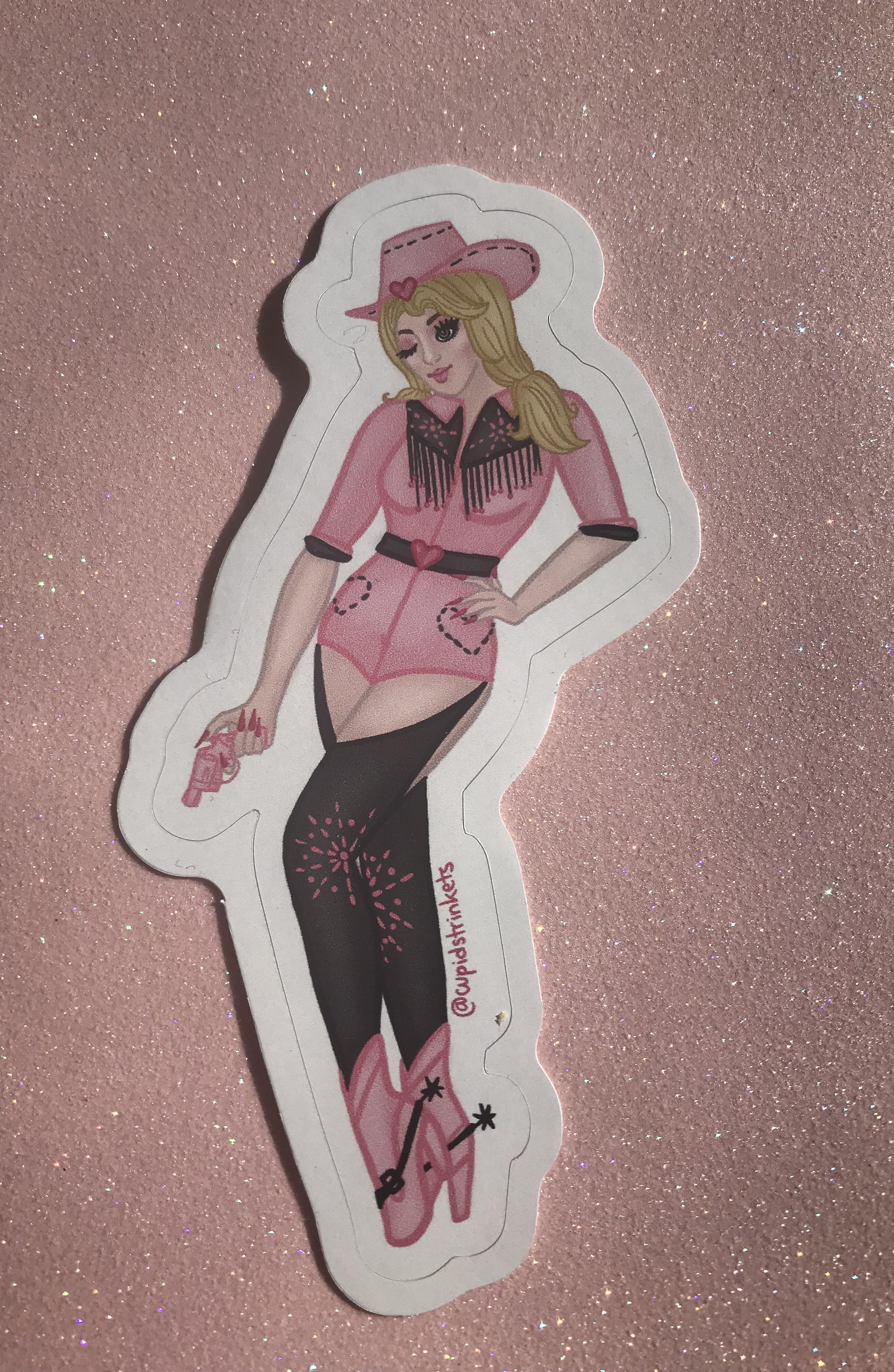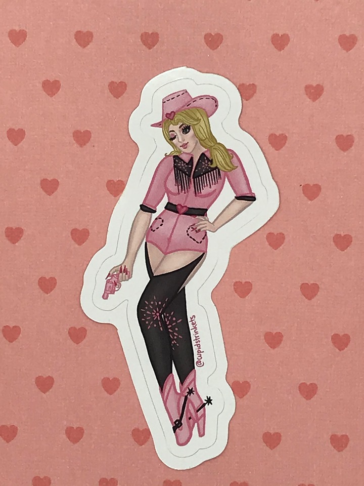 Nothing says pin-up cowgirl like our sticker does! With just the right amount of pink and all the right amount of femme fatale, we're pretty sure our little sharpshootin' cutie would make Dolly Parton proud.