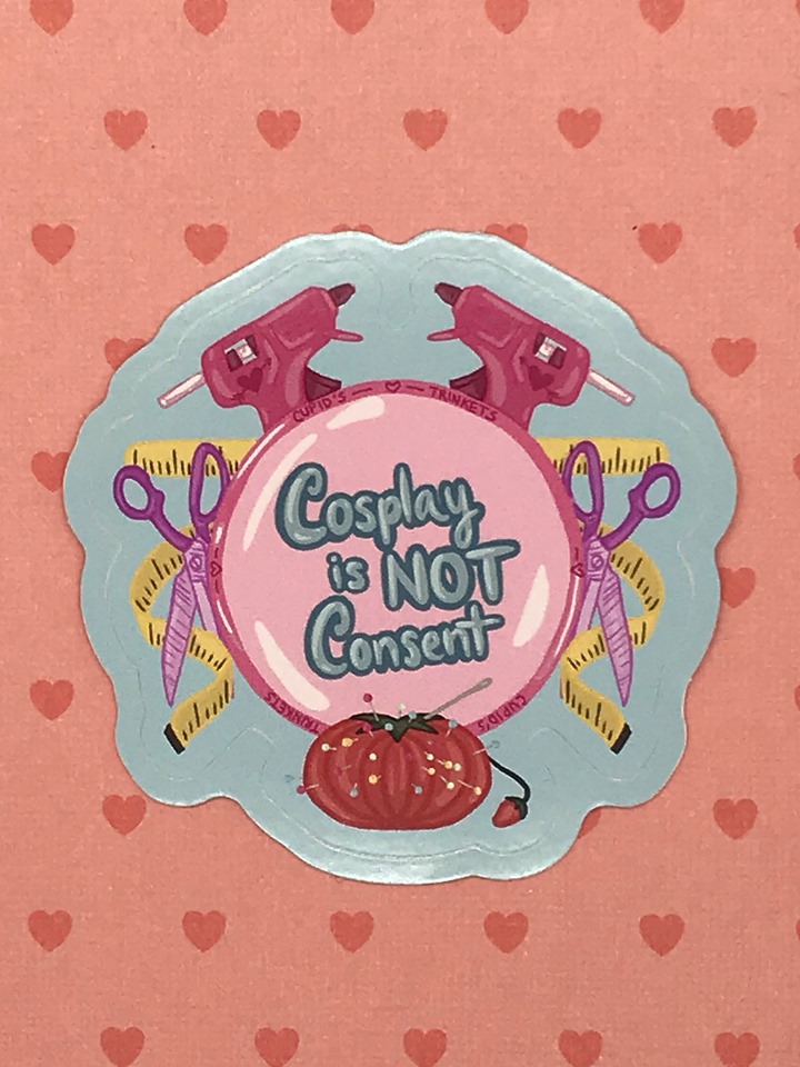 Cosplay is NOT Consent! Shout it to the heavens, and make sure others around you know it, too with this new sticker from Cupid's Trinkets!
