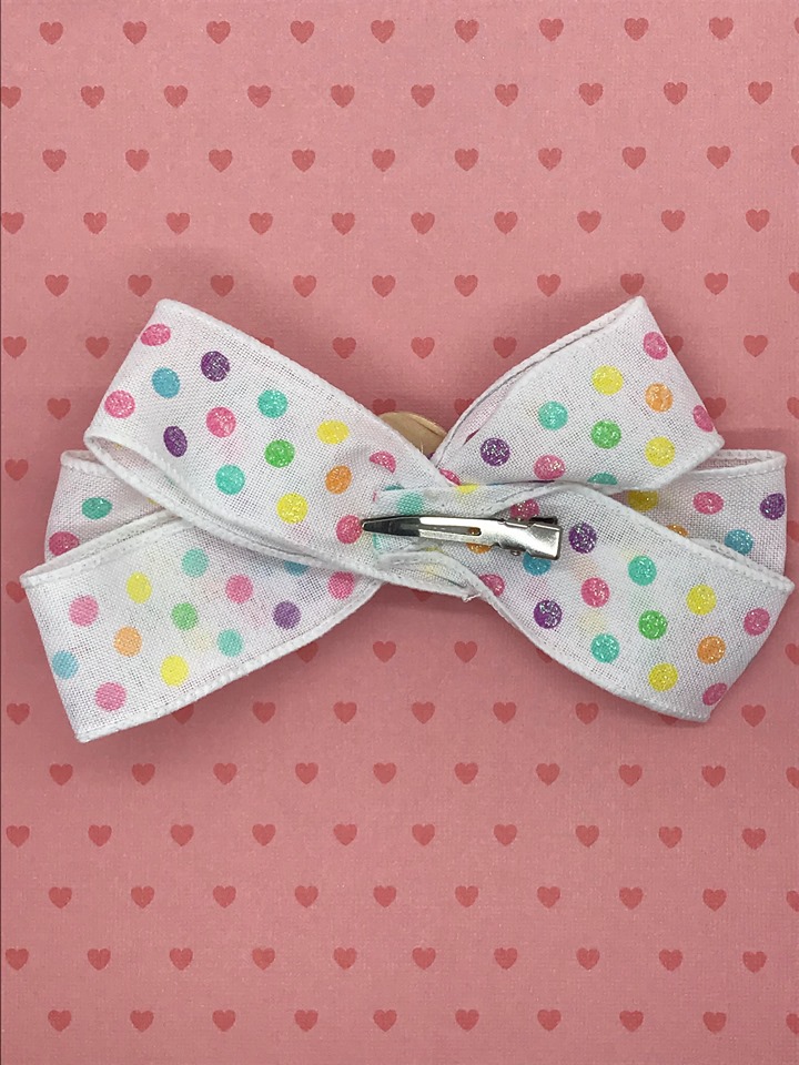 These custom hairbows come as a limited edition item to the Cupid's Trinkets inventory! Two styles are available; The Painter's Palette Bow, and the Clownin' Around Bow! Both bows feature a hair clip in the back.