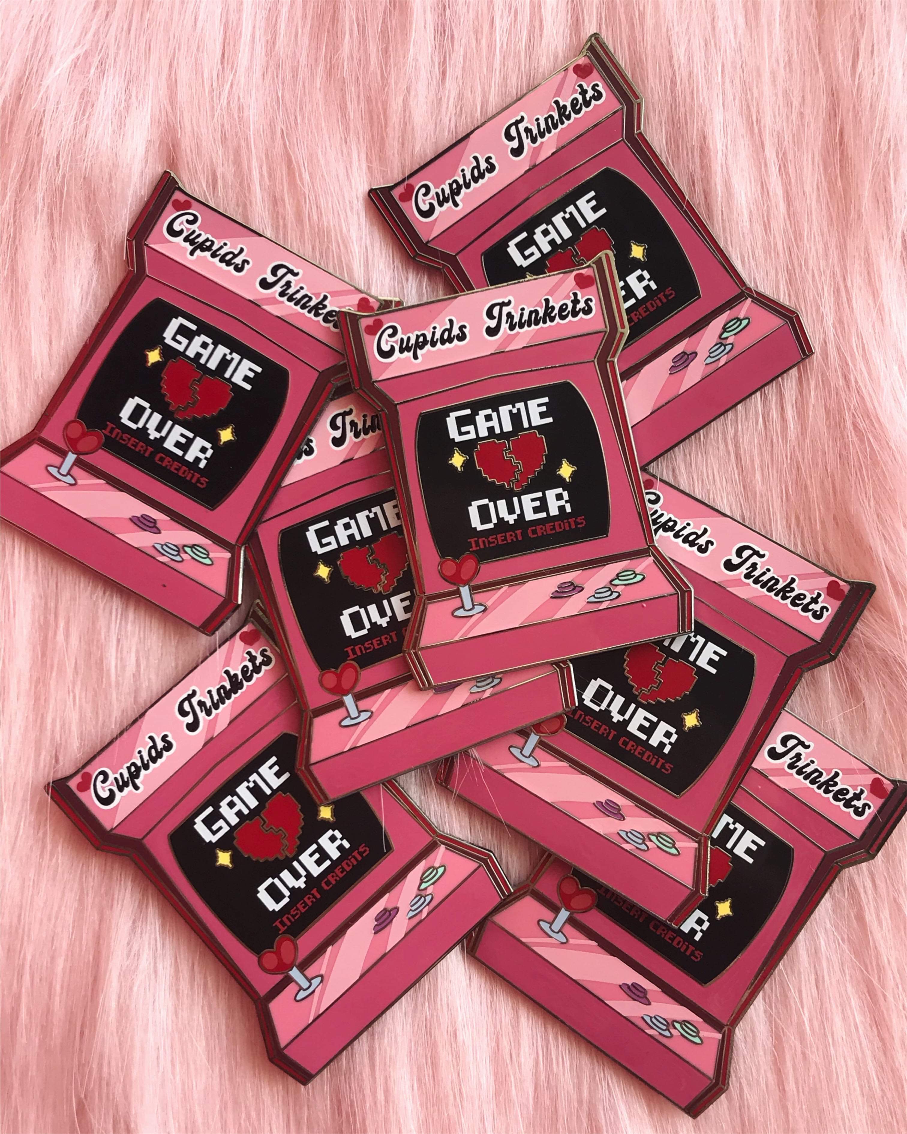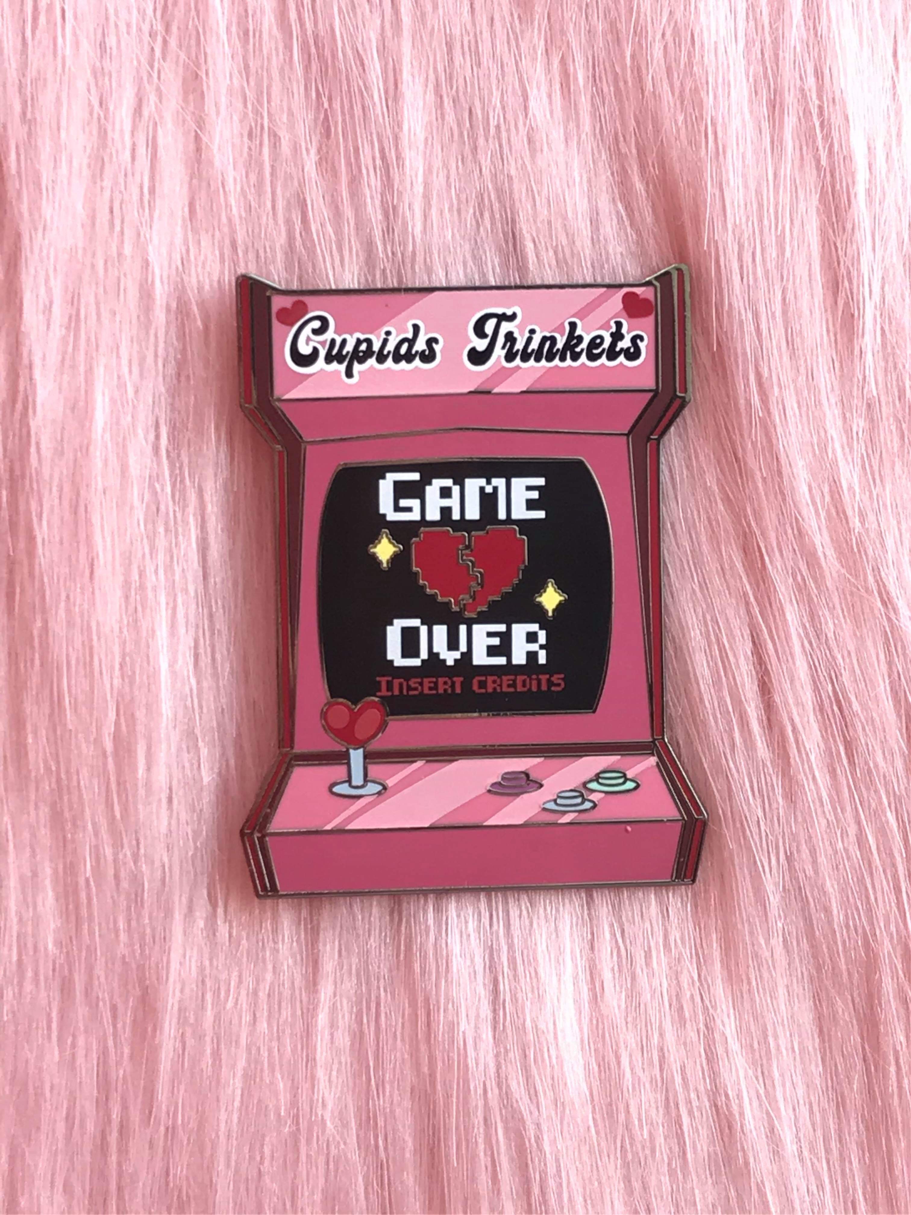 Game over, baby! This adorable nostalgic pin is 2 inches in height and made out of hard enamel with a ton of screen printed details to give the perfect look.