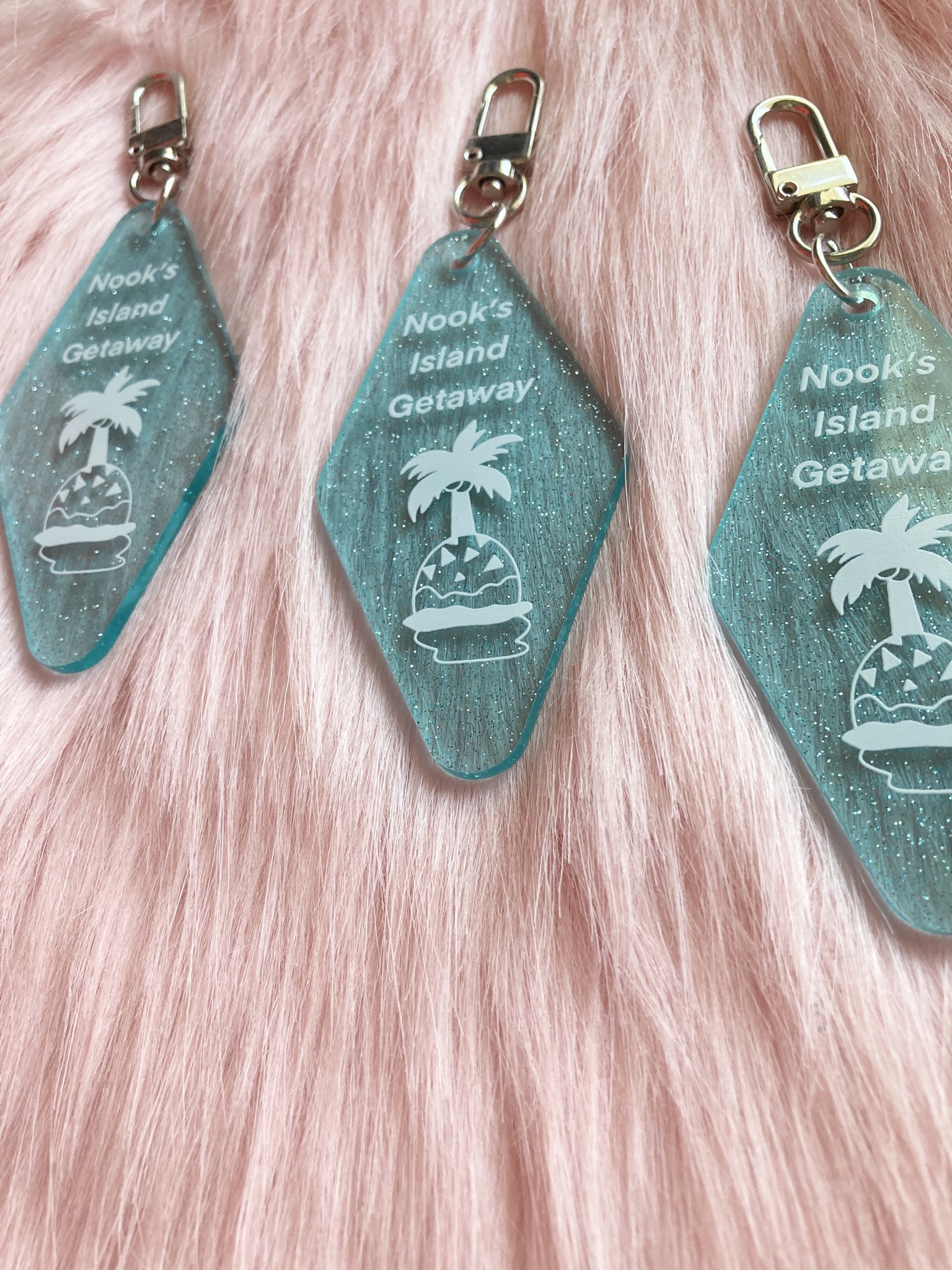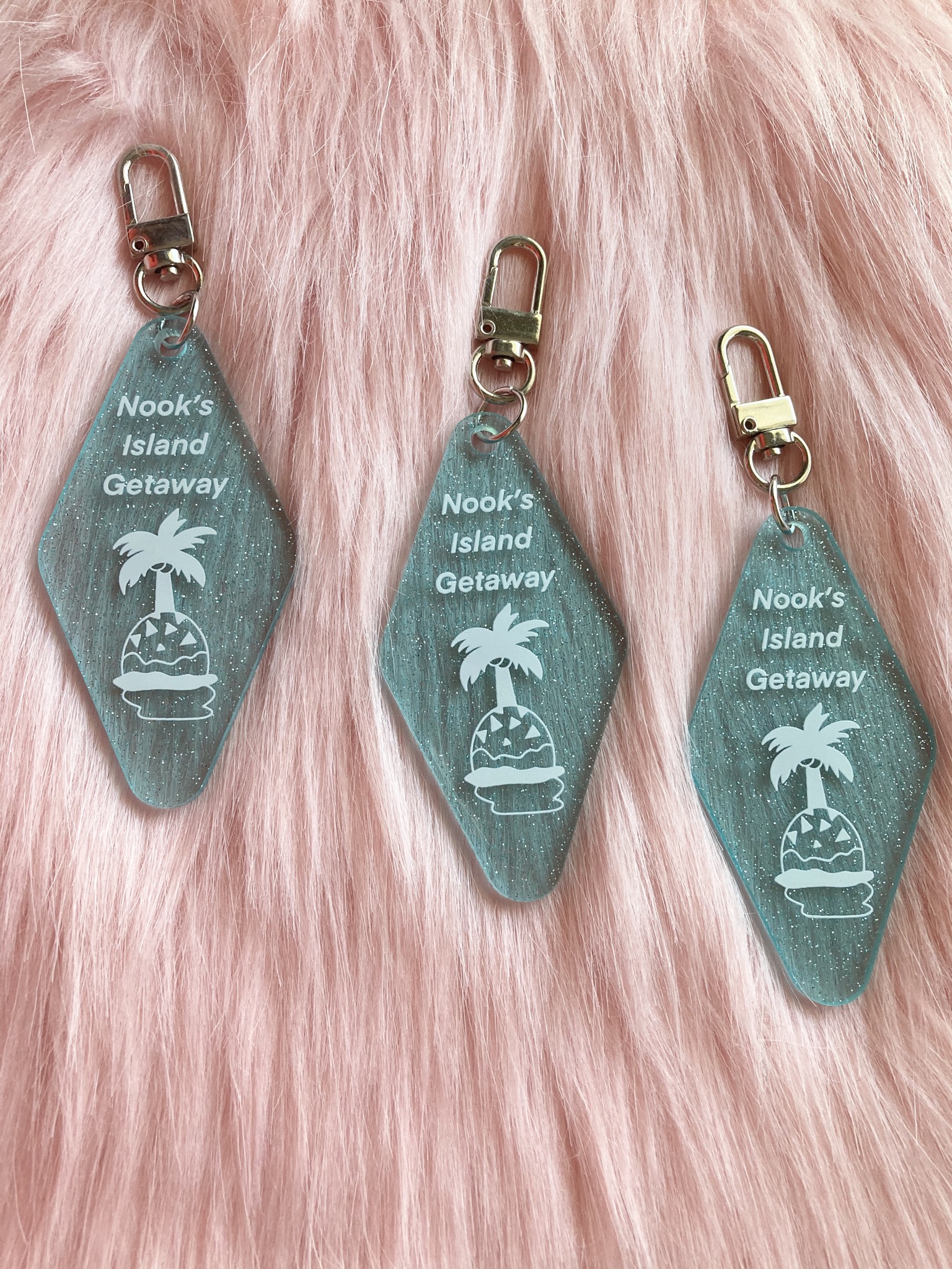 What’s better than the keys to your new Island Getaway Home (that has incurred a lot of debt in bells)? The keychain that comes with it, of course! This glitter keychain was FAN ART inspired by the thrill of creating your home that comes with playing Animal Crossing New Horizons, and we wanted to share that with you! Let everyone know you’re a homeowner by having this bad boy on your keys.