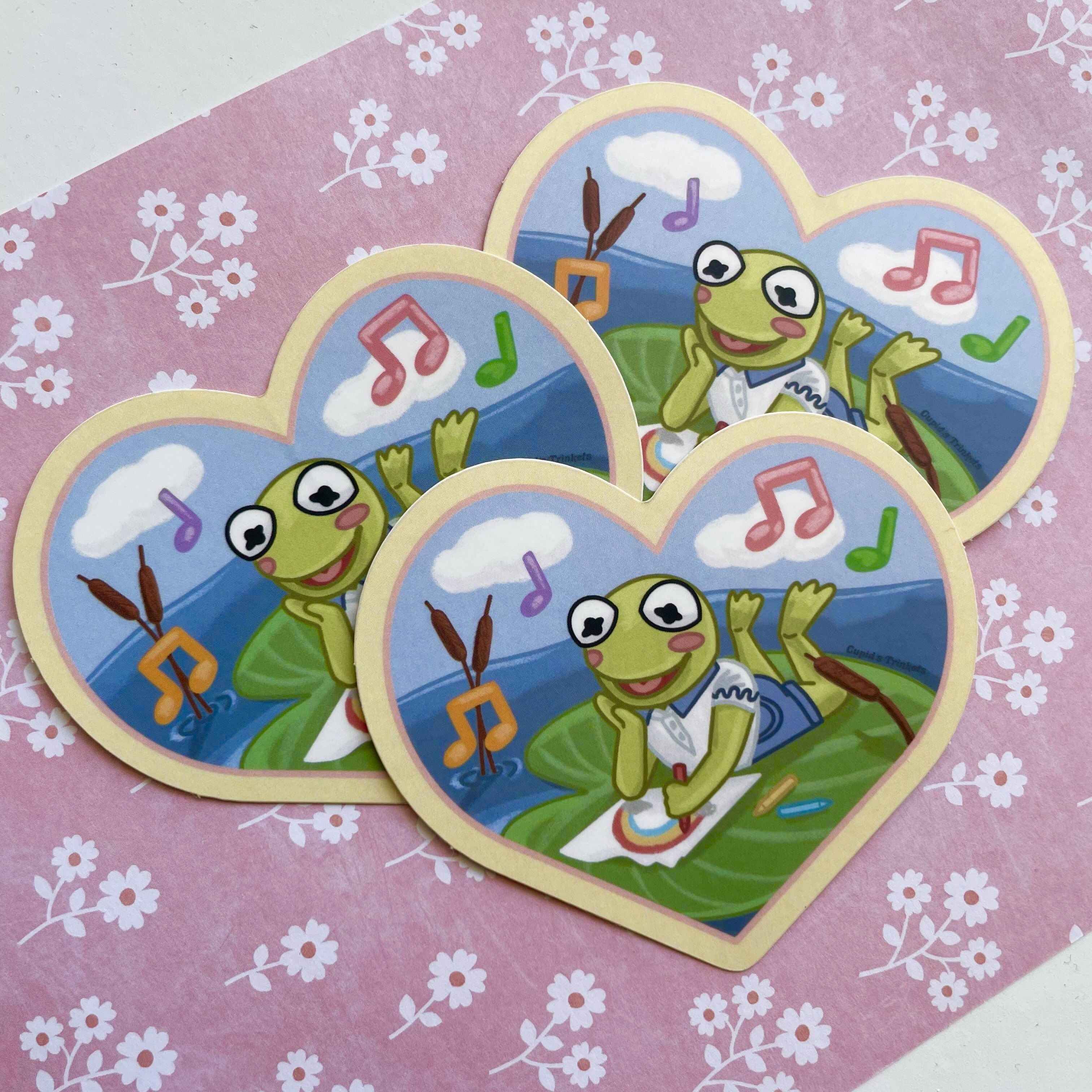 This adorable Baby Kermit matte vinyl sticker measures 3"x 2.57" in size and is durable and waterproof!