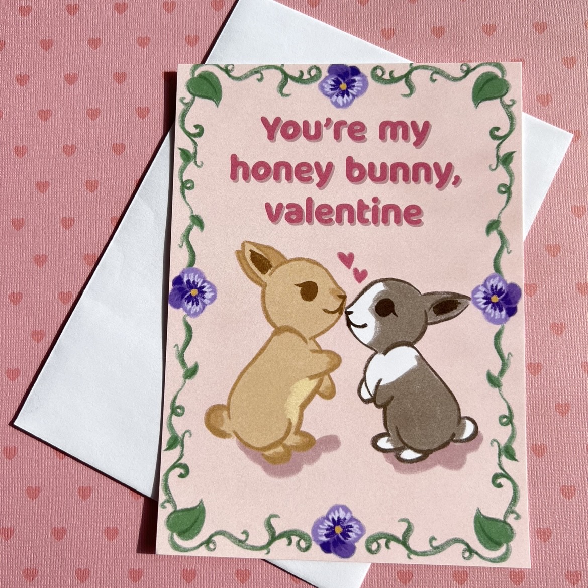 Show your love to your honey bunny this Valentine's Day with this adorable card. Comes in two different formats, a traditional folded 5" x 7" card and a single-sided 5" x 7" card, please be sure to specify the item you want before checking out!